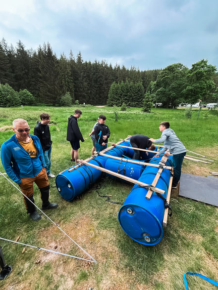 Tag 2 unseres Schüleraustausch ist in vollem Gange. Heute ging es für alle Beteiligten auf hohe See an die Lütsche. Nach vielen Stunden harter Arbeit, ging es schließlich mit eigenem Floß bei bestem Wetter aufs Wasser.